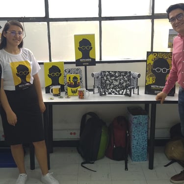 Primer semestre: cartel 3d tamaño tabloide en planos superpuestos y cuatro piezas en Kirigami sobre artistas plásticos